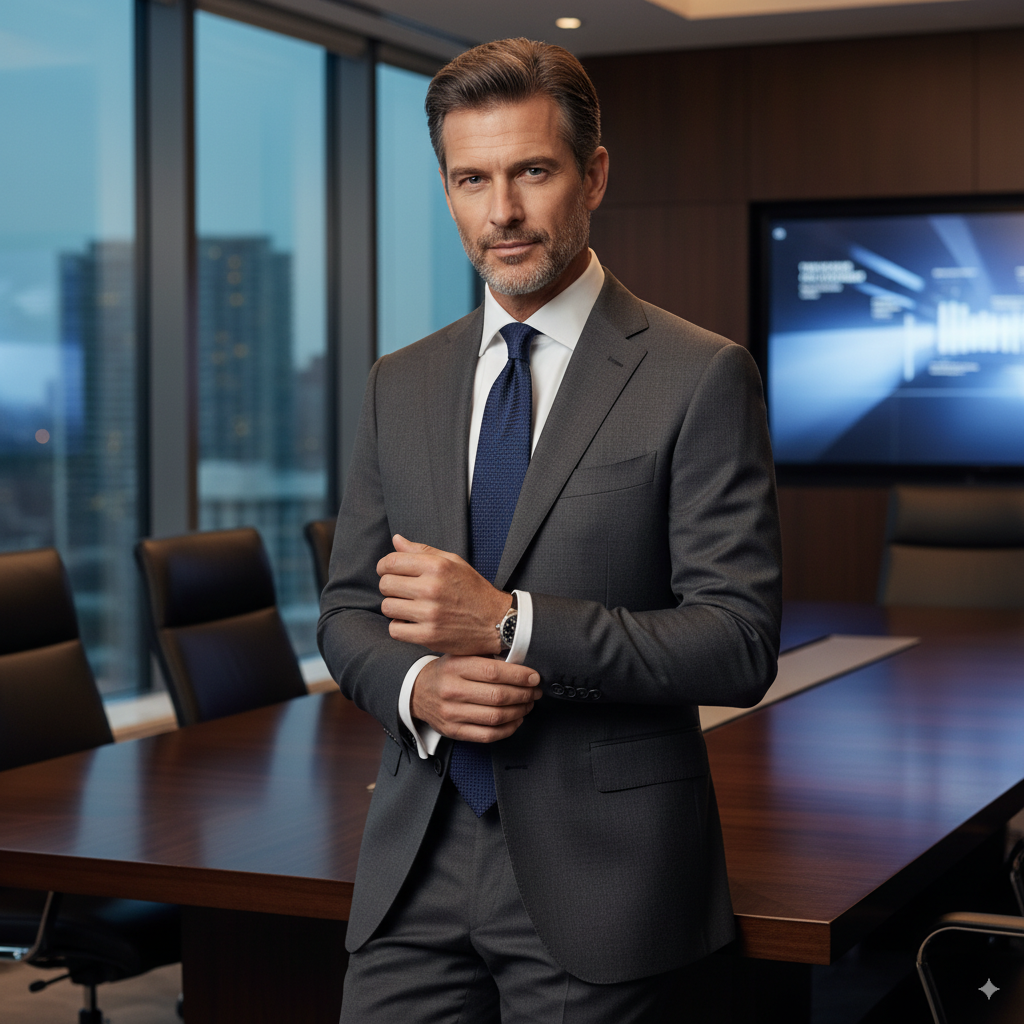 100% long-staple cotton satin. Crisp white finish with subtle sheen. Slim tailored fit, perfect for board meetings and weddings.